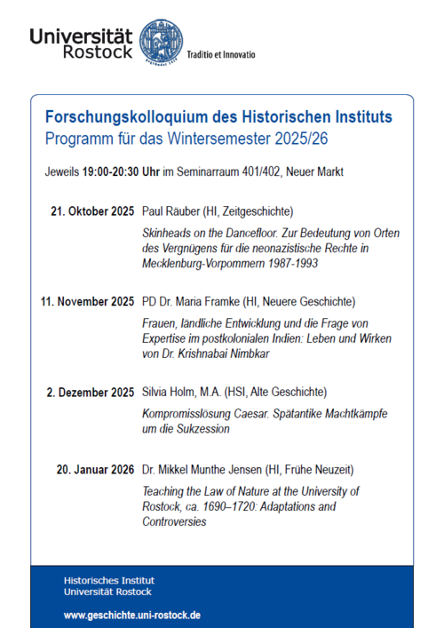 - 20. Januar 2026 Dr. Mikkel Munthe Jensen (HI, Frühe Neuzeit)
